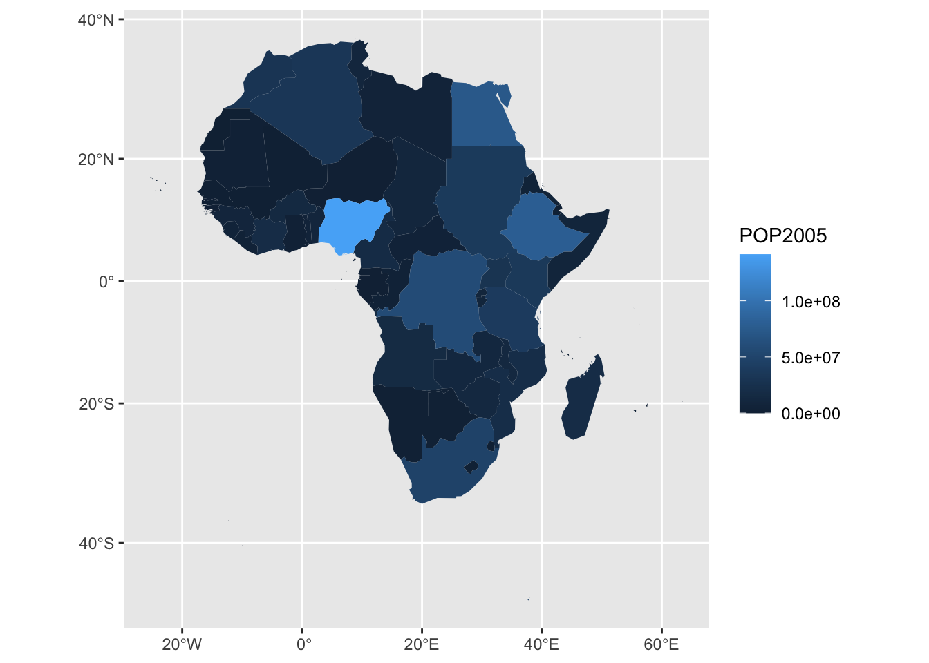 labs(title = "Africa 2005 Population") + # 添加标题