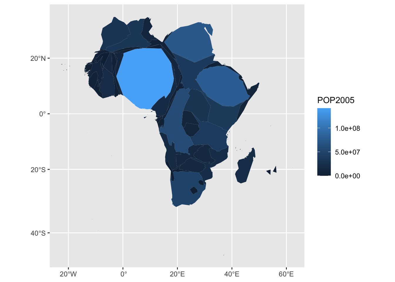 afr_cartogram <- cartogram_cont(afr_cartogram, "POP2005", itermax = 1)