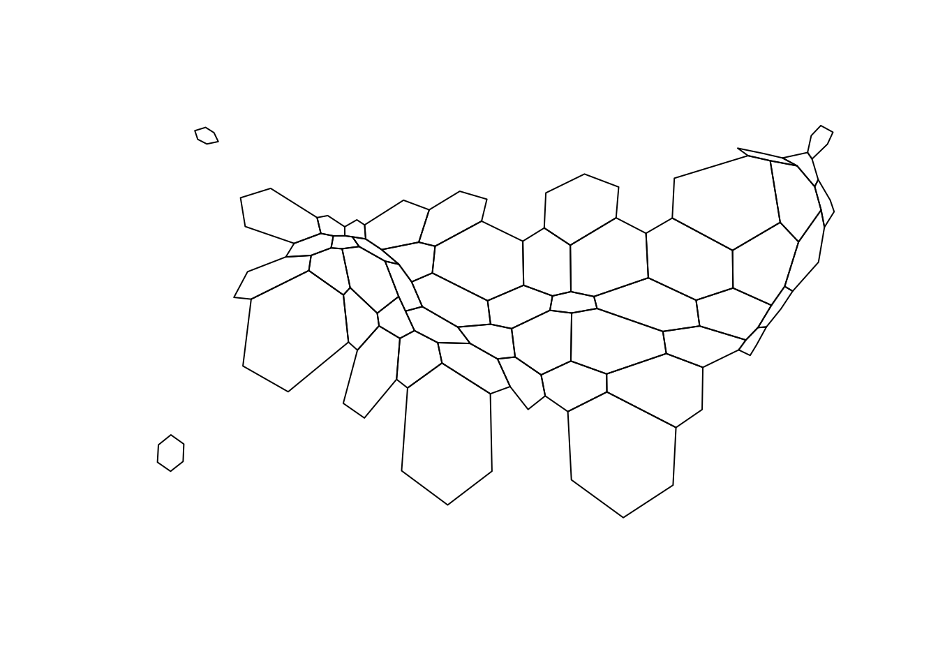 # 这将绘制美国各州的六边形网格边界