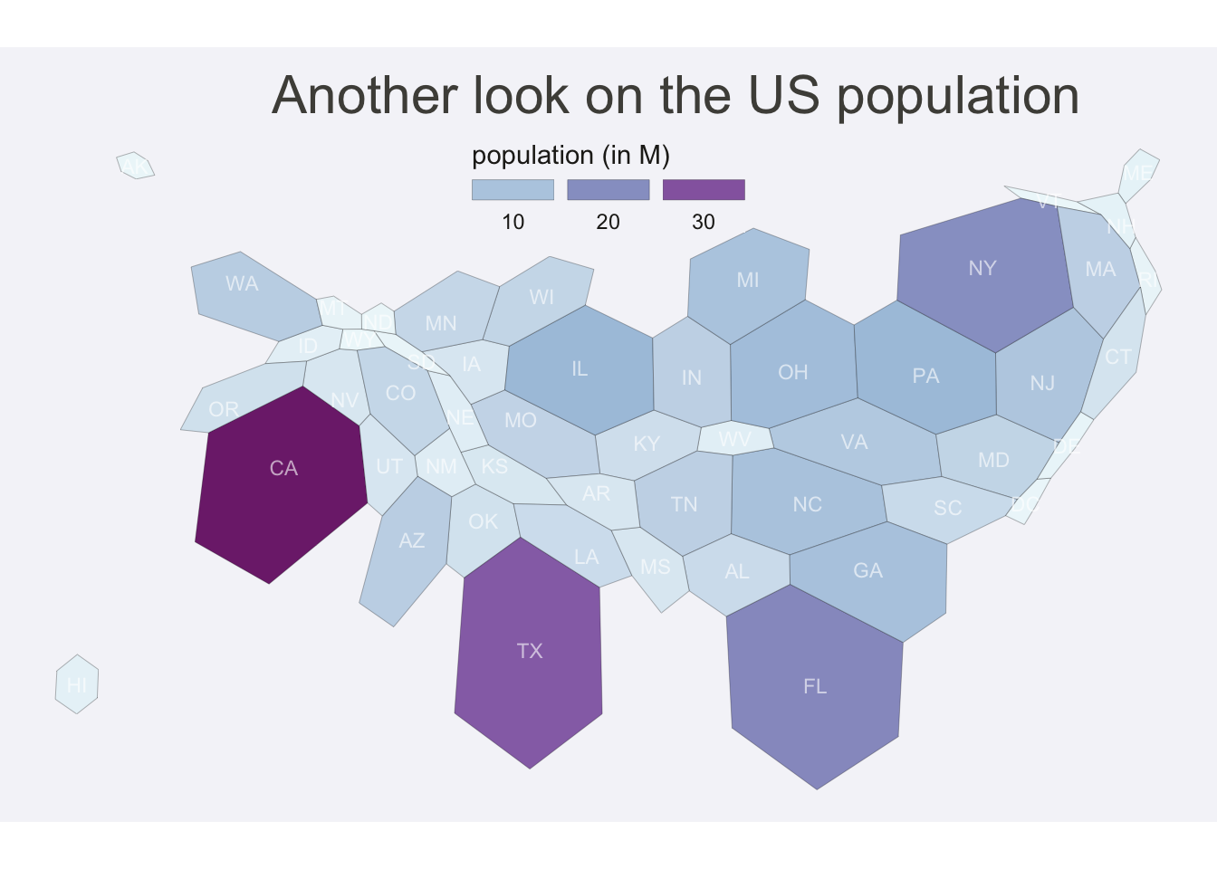 # 人口较多的州会显得更大,人口较少的州会显得更小