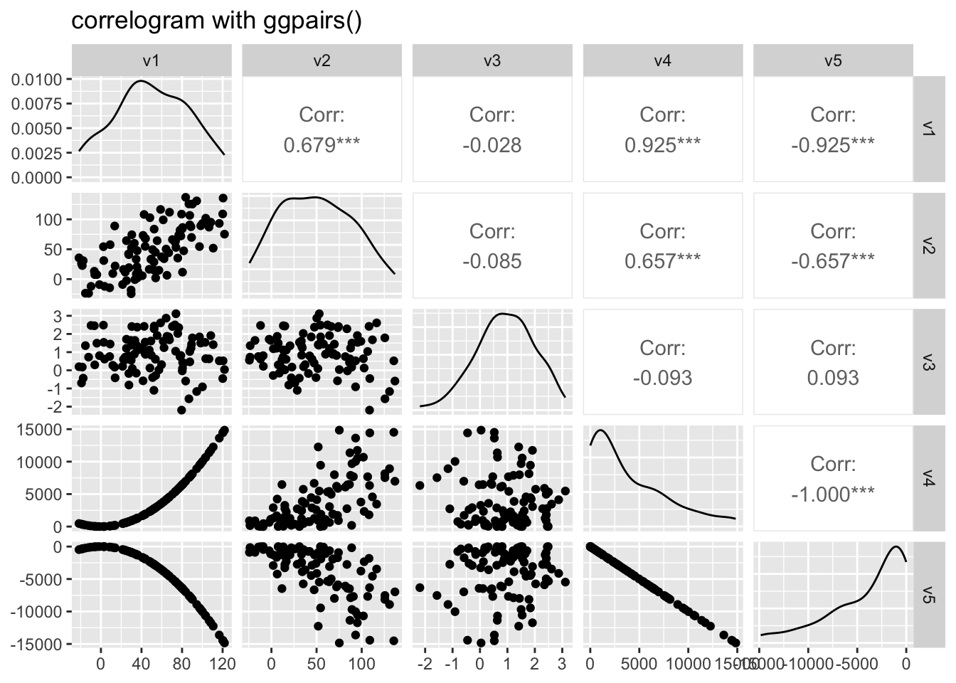 library(car) # 线性回归诊断ggpairs()# 构造示例数据