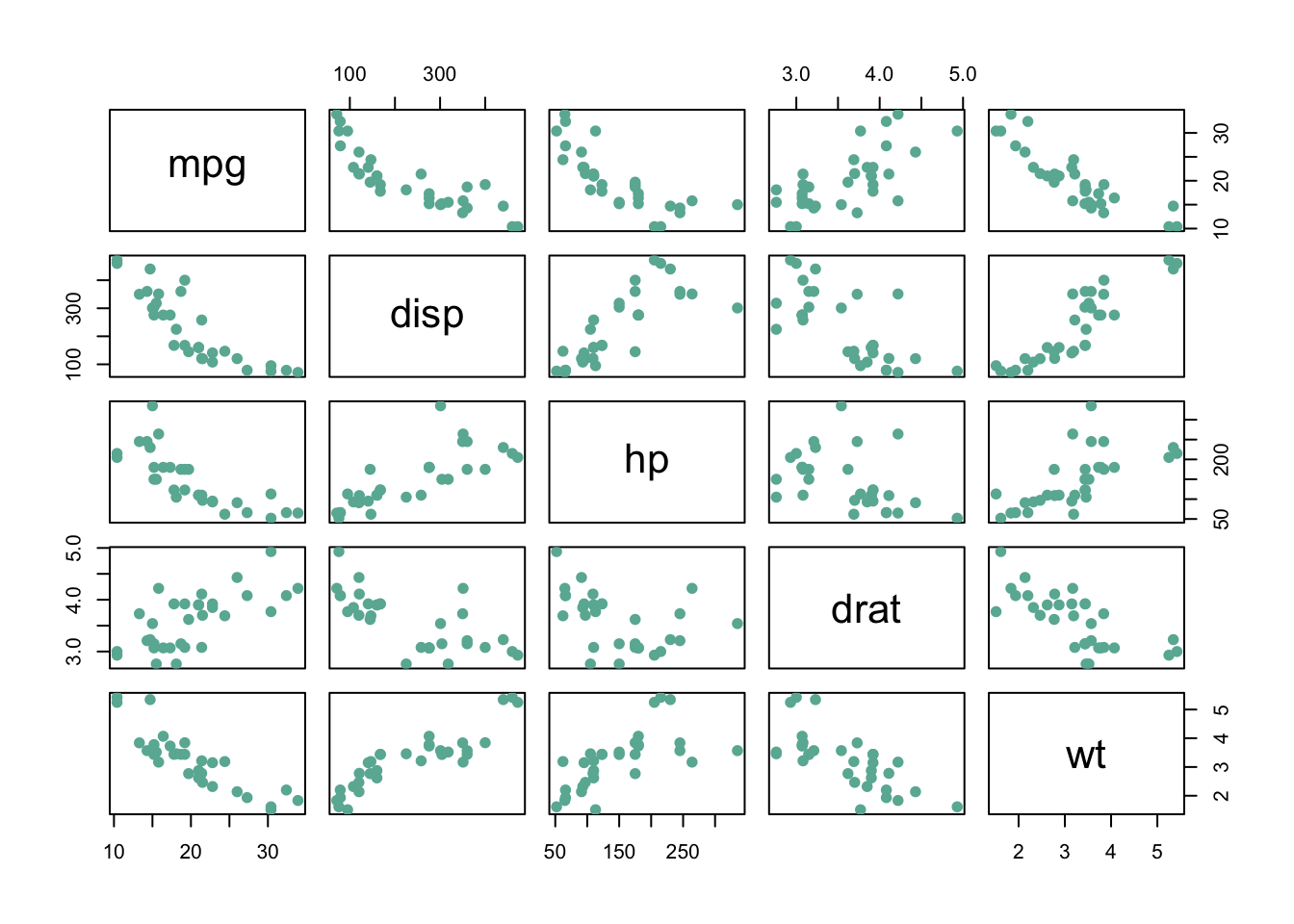 # 选择 mtcars 数据集的第1、3、4、5、6列,构建数据框