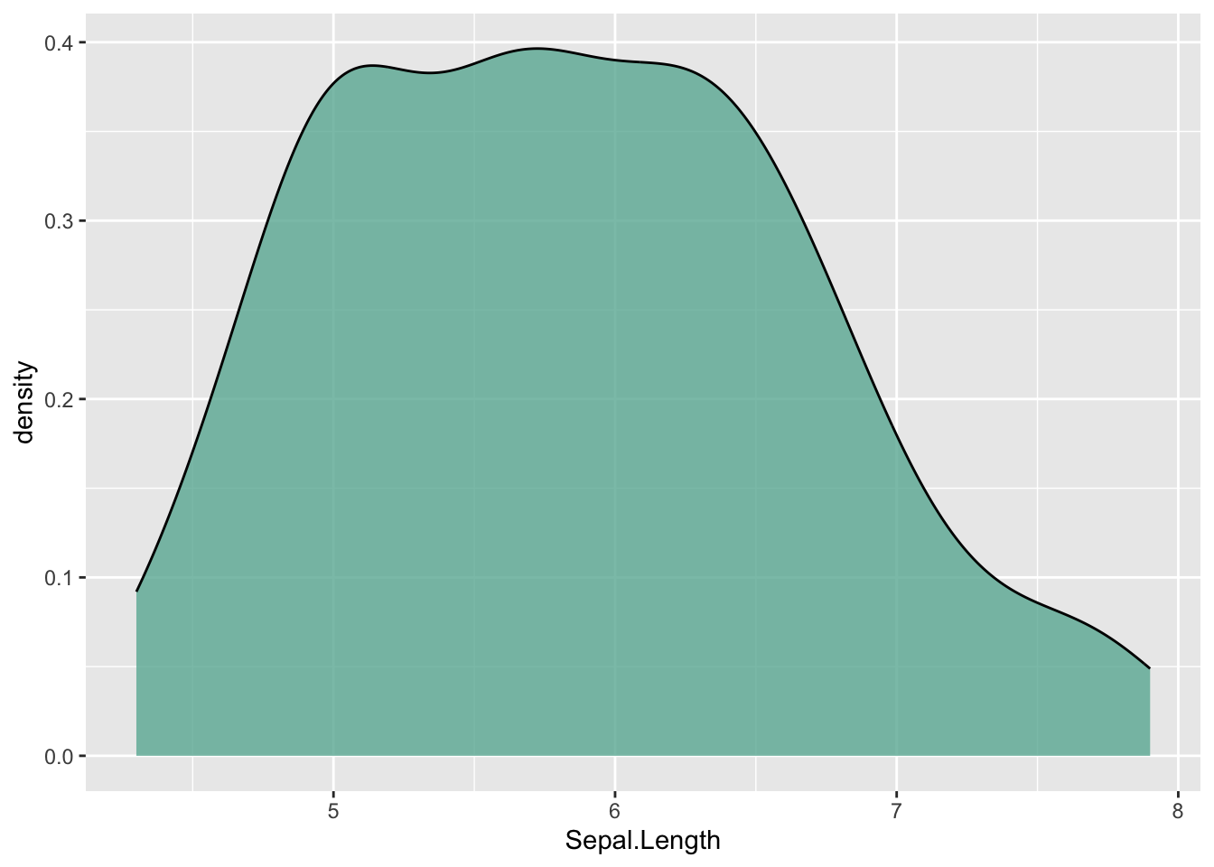 geom_density(fill="#69b3a2", alpha=0.8) # 可选主题 theme_ipsum()