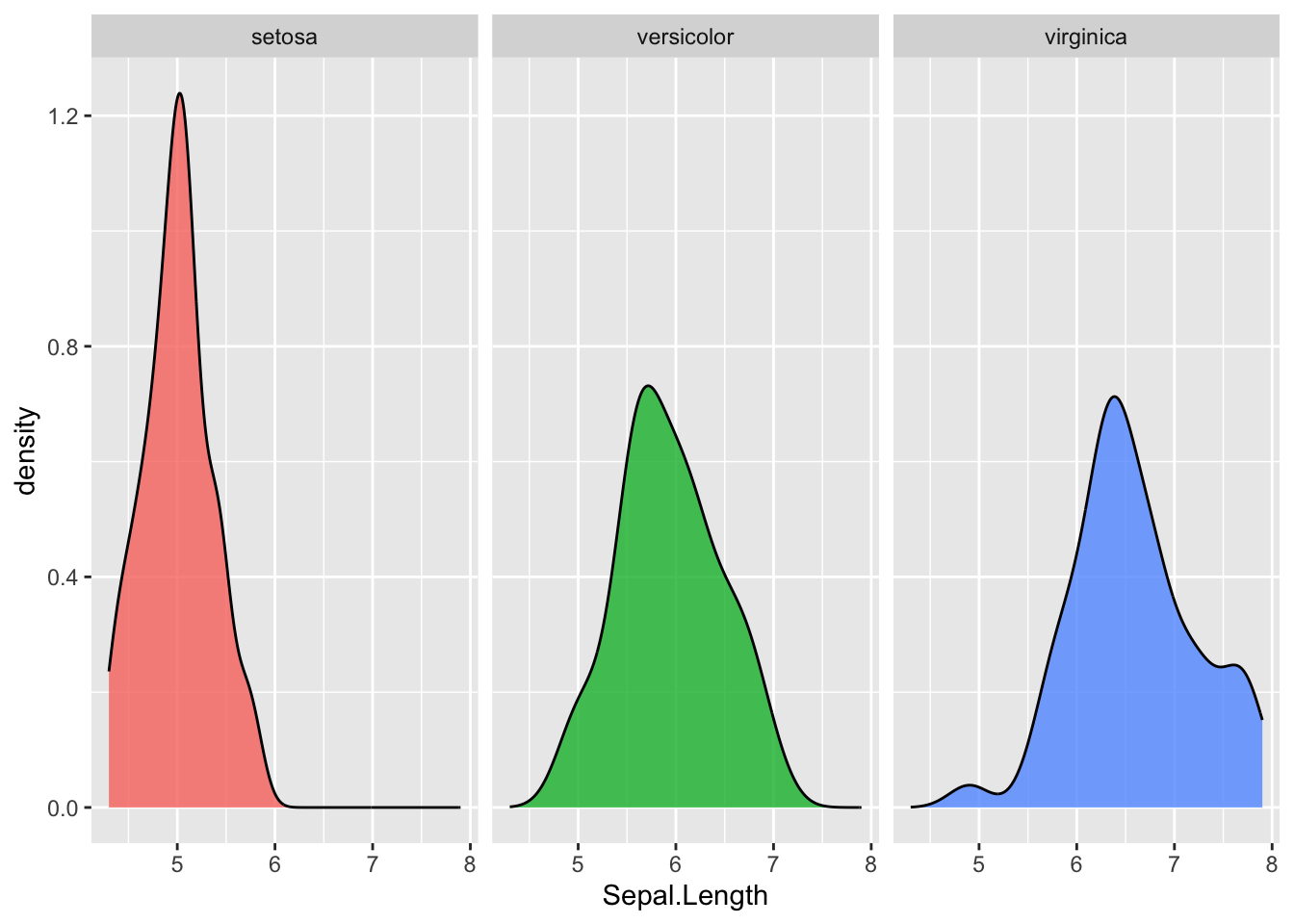 ggplot(iris, aes(x = Sepal.Length, fill = Species)) +