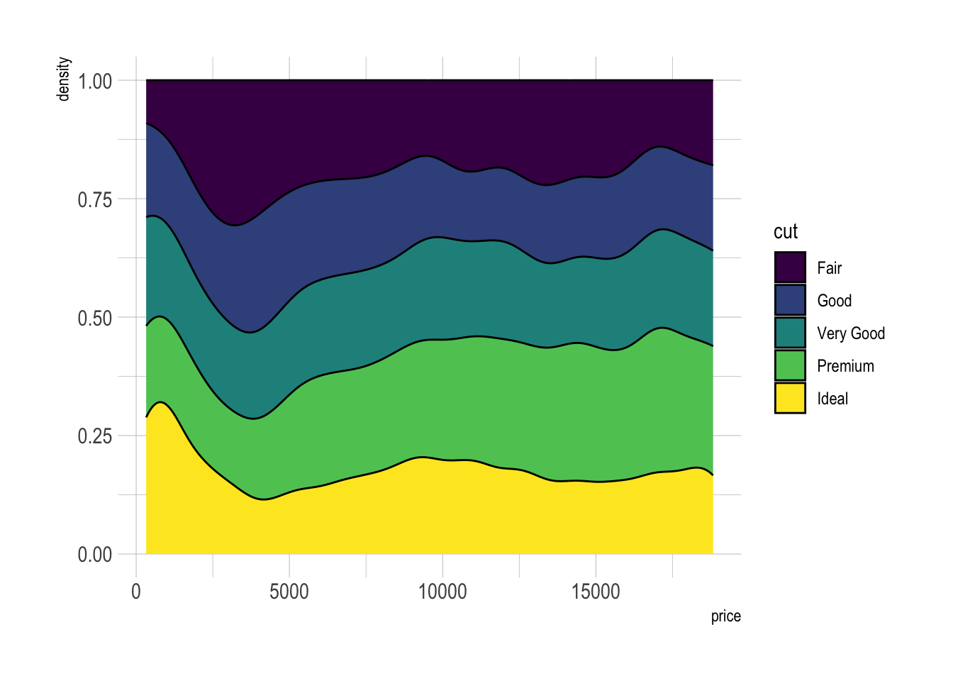 ggplot(data=diamonds, aes(x=price, group=cut, fill=cut)) +