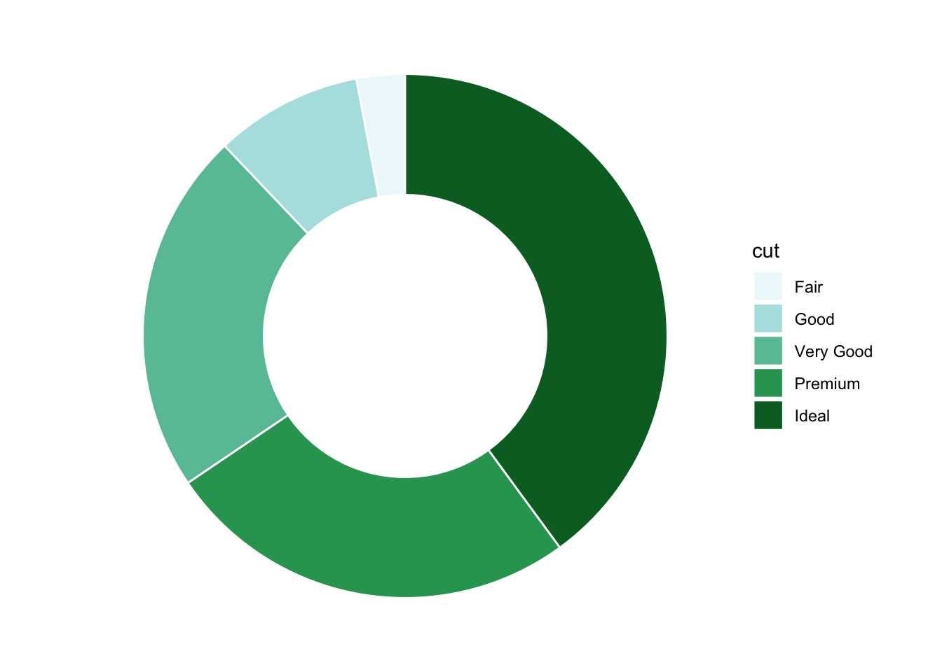 library(tidyverse)与饼图相比,环形图在视觉上更具吸引力,但是也存在饼图的问题,见 Chapter 22