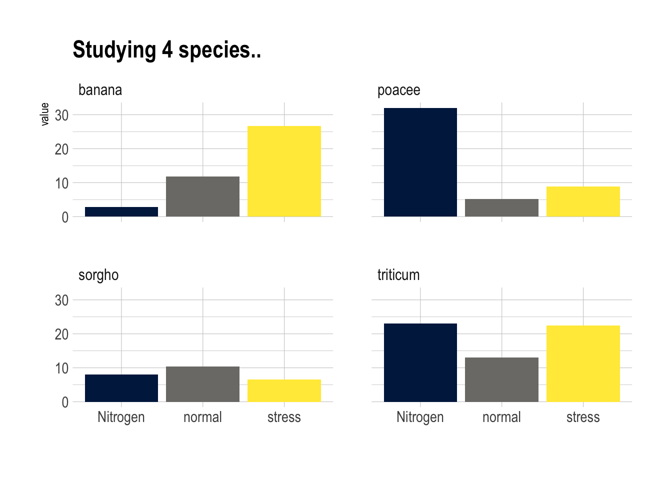 # 使用ggplot2绘制分组条形图(分面显示每个物种)
