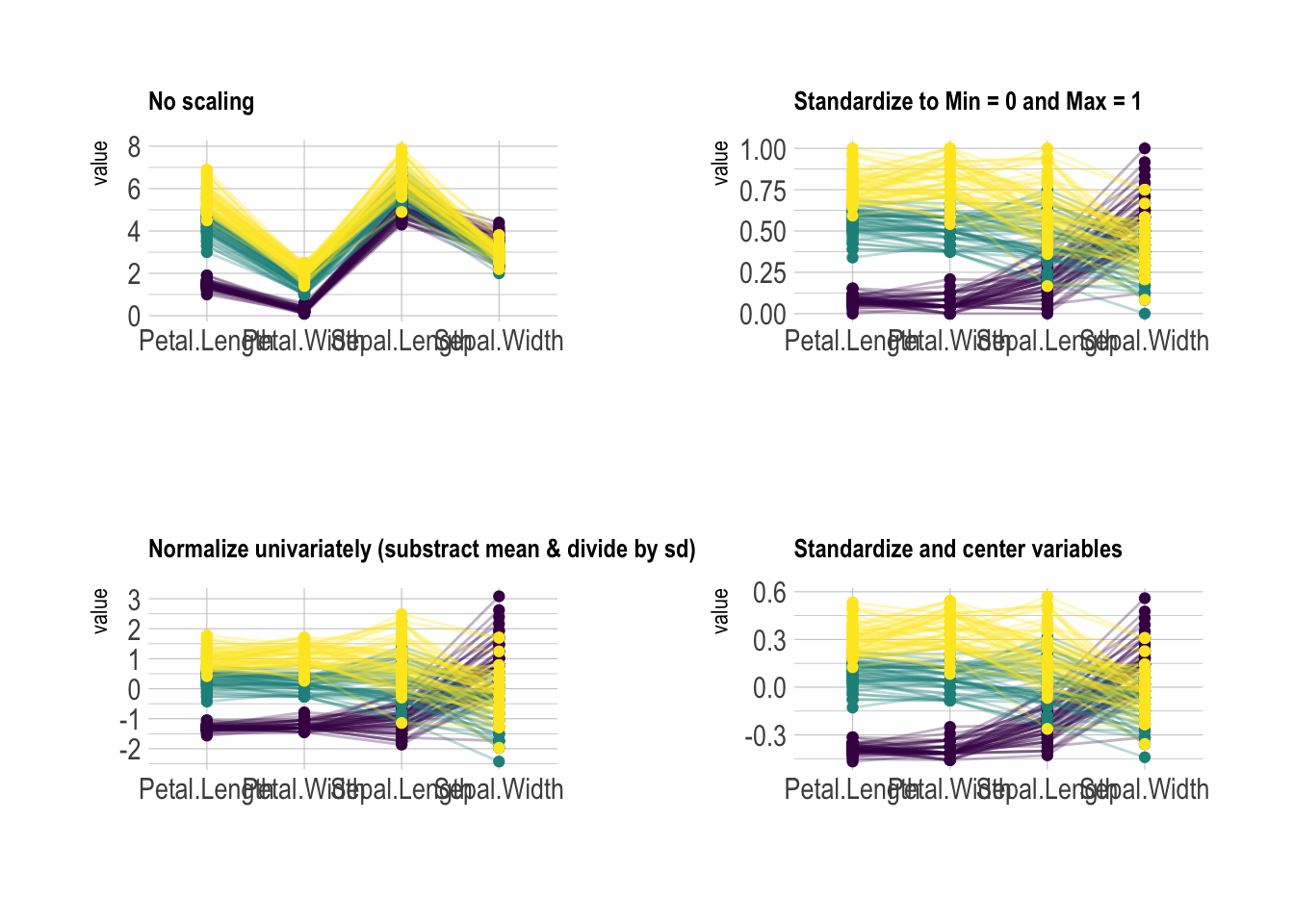 # 拼接四种缩放方式的平行坐标图