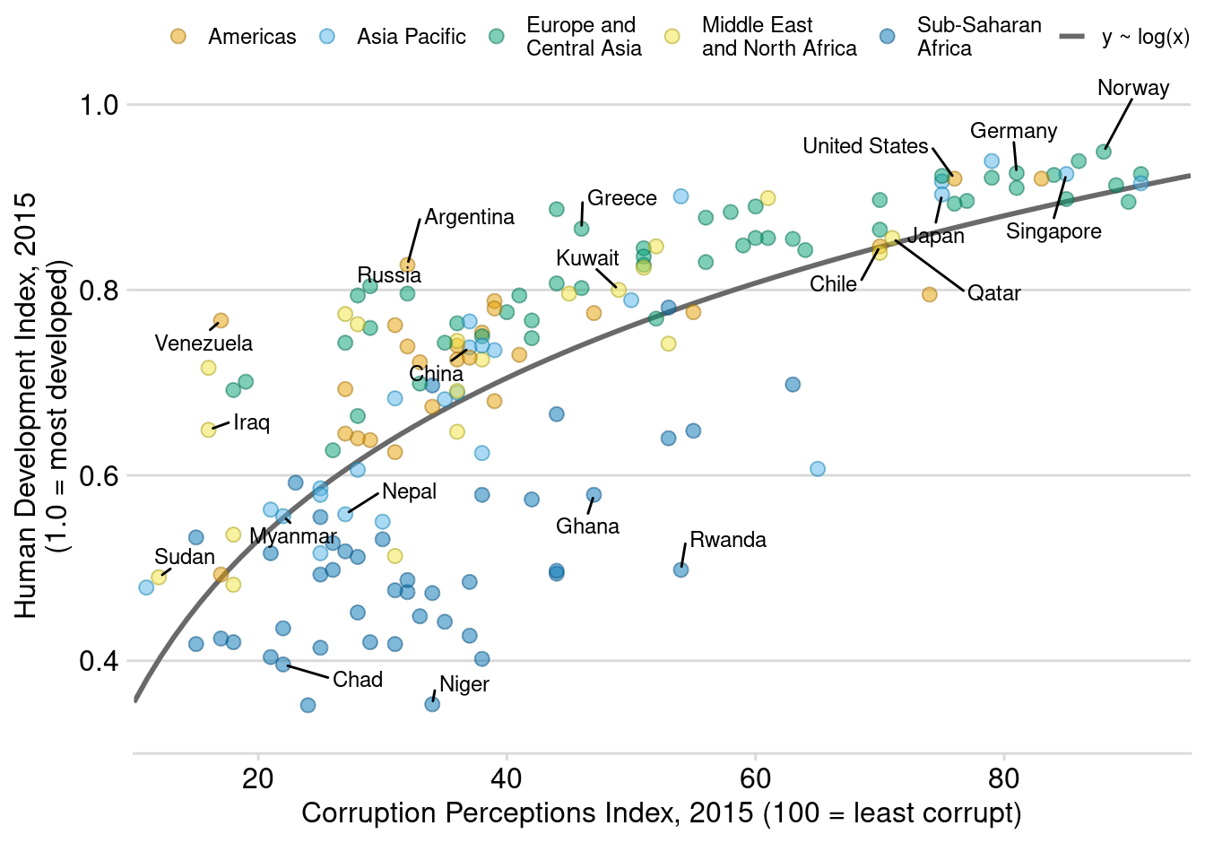 一种美观的带有回归拟合和自动文本排斥的散点图,见 R-graph-gallery :