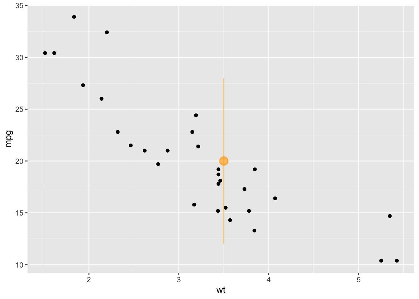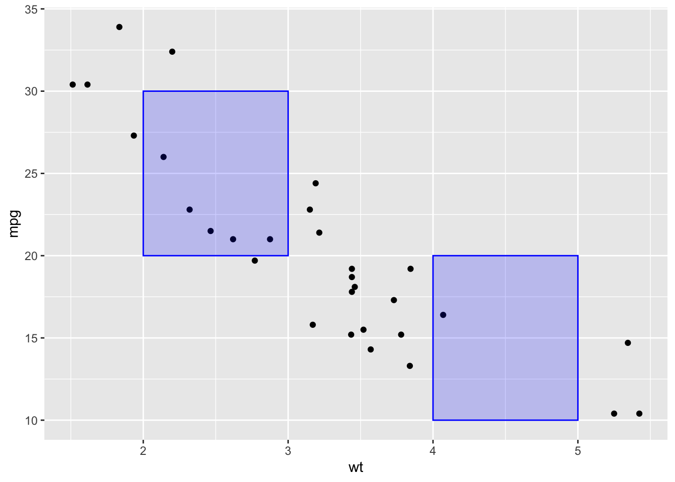 p <- ggplot(mtcars, aes(x = wt, y = mpg)) +
