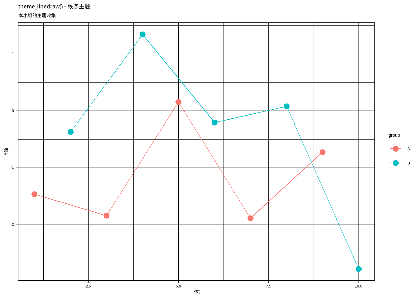 p8 <- base_plot + theme_linedraw() + labs(title = "theme_linedraw() - 线条主题")
