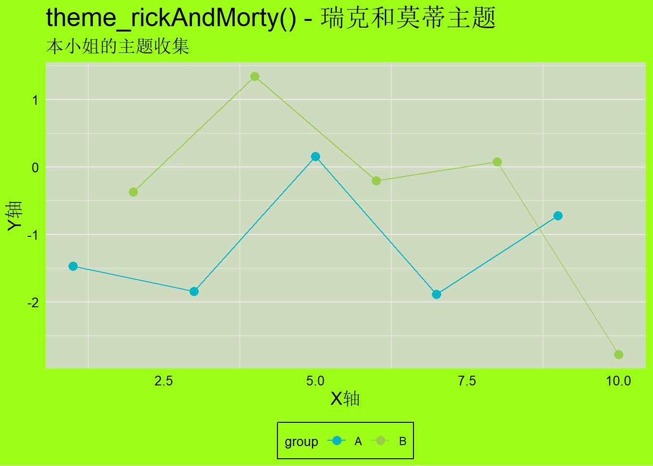 labs(title = "theme_rickAndMorty() - 瑞克和莫蒂主题")