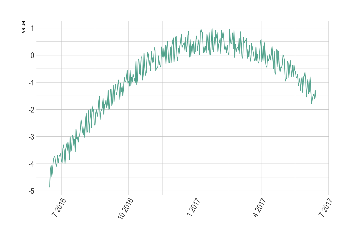 value = runif(365) - seq(-140, 224)^2 / 10000 # 生成带趋势的随机数值