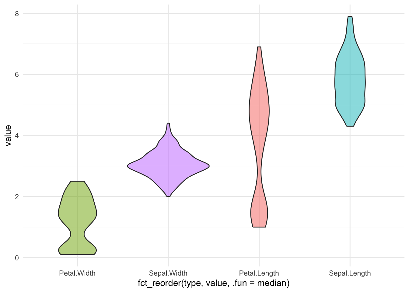 ggplot(aes(x = fct_reorder(type, value, .fun = median), y = value, fill = type)) +
