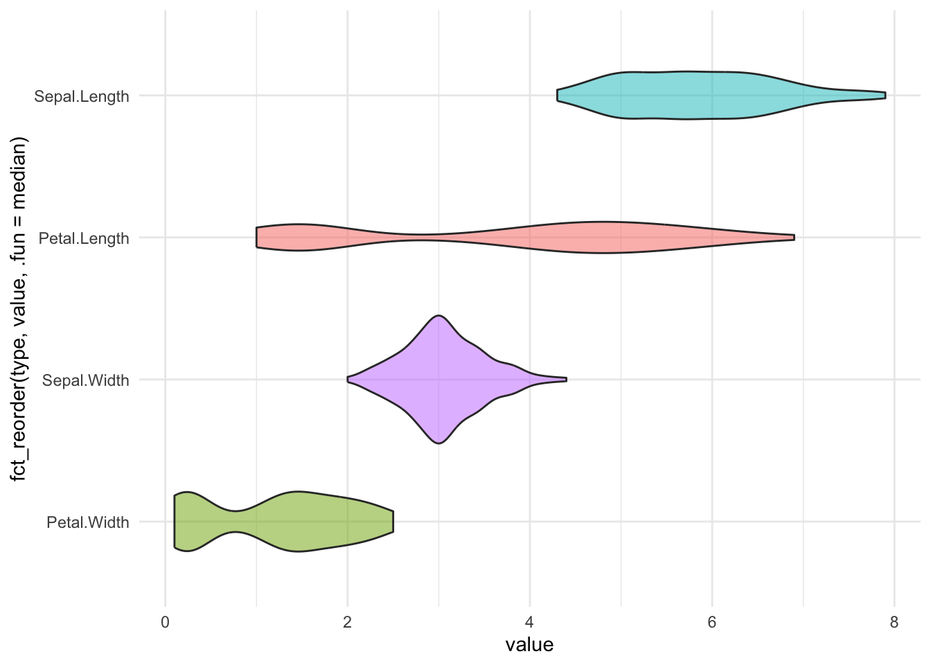 ggplot(aes(x = value, y = fct_reorder(type, value, .fun = median), fill = type)) +